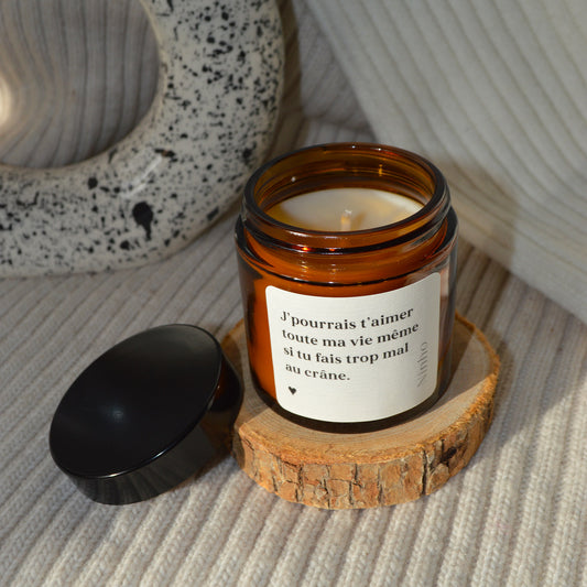 Bougie citation "T'aimer toute ma vie même si tu fais trop mal au crâne"