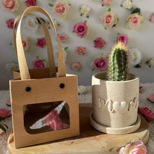 Pot fleur Maman fait main "Mom" Beige moucheté