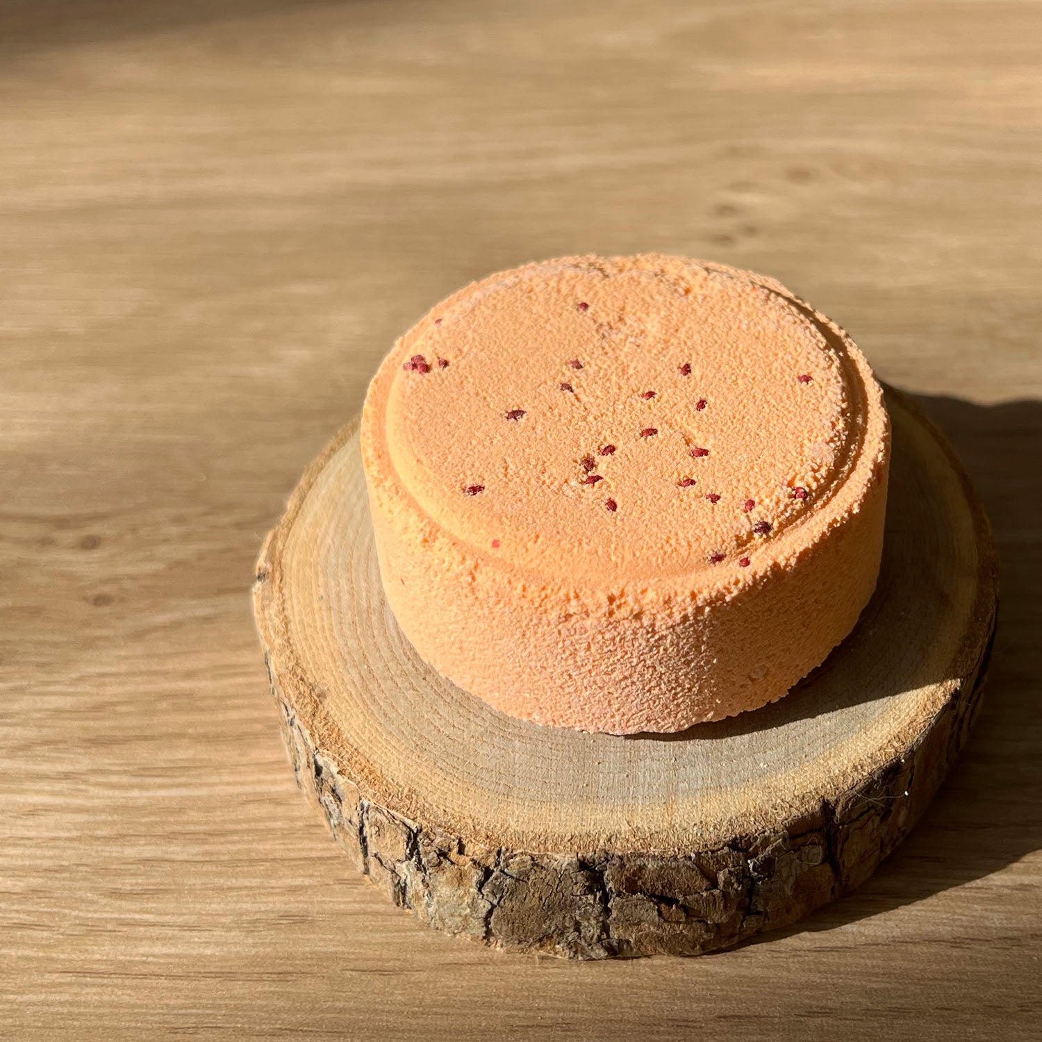 Galet de douche emballé dans un sachet kraft.